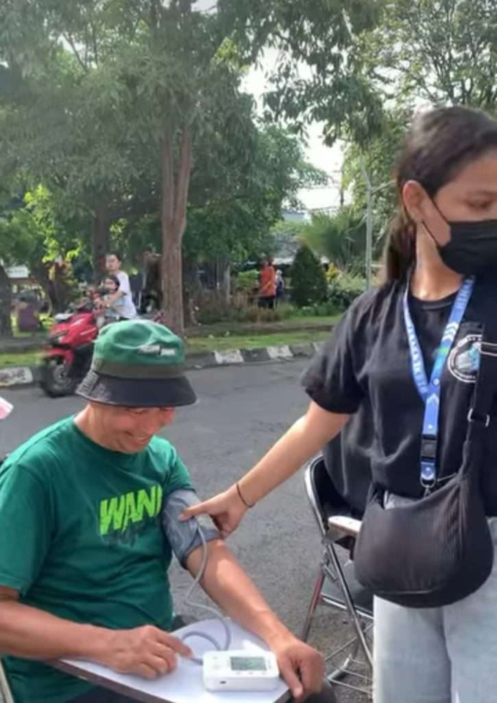 Para mahasiswa terlihat bekerja dengan penuh simpati dan profesionalisme. Mereka tidak hanya melakukan pemeriksaan, tetapi juga memberikan edukasi mengenai gaya hidup sehat yang mudah diterapkan sehari-hari.