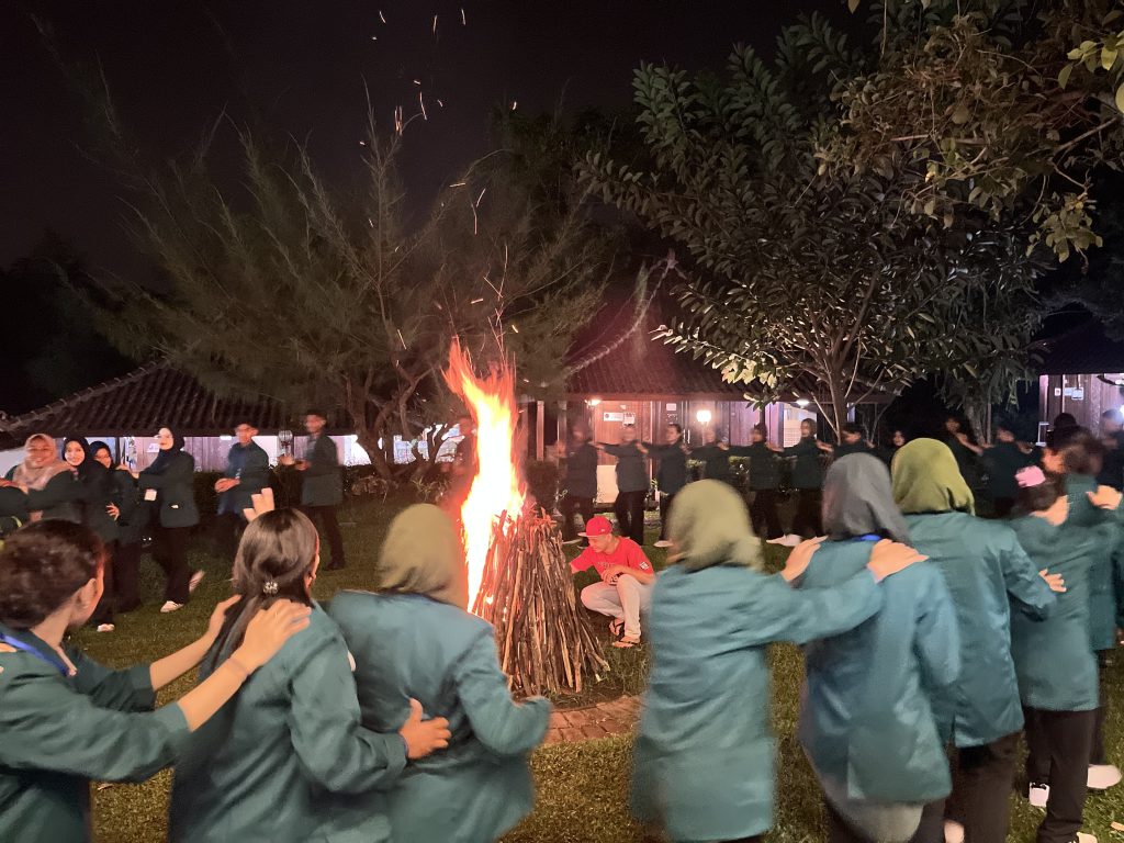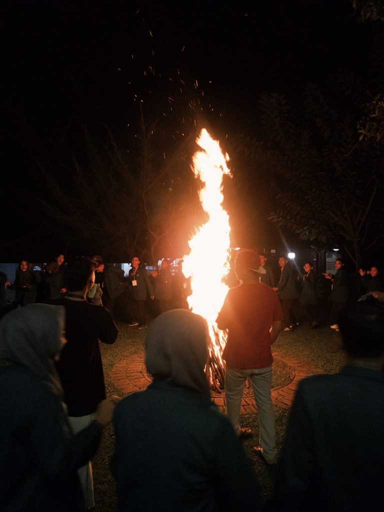 Malam harinya, para mahasiswa berkumpul mengelilingi api unggun. Suasana hangat tersebut menjadi momen yang paling dinanti—tempat semua cerita dibagikan, canda tawa dilepas, sekaligus kesempatan untuk lebih mengenal satu sama lain. Setelah itu, kegiatan malam renungan menjadi titik yang menyentuh. Lampu dimatikan, suasana hening, dan setiap peserta diajak merenungkan kembali tujuan mereka sebagai mahasiswa maupun calon pemimpin di masa depan.